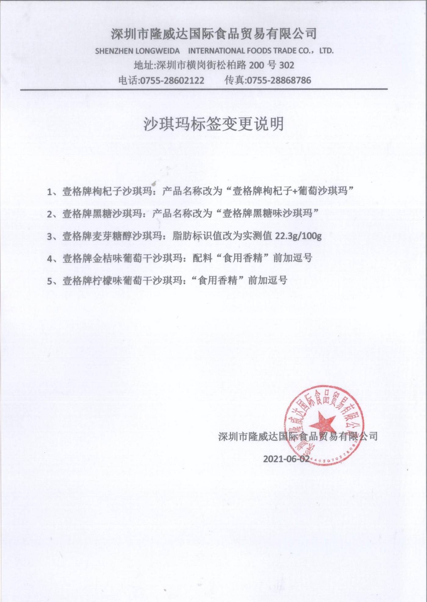 關(guān)于本公司司壹格牌沙琪瑪標(biāo)簽變更說明