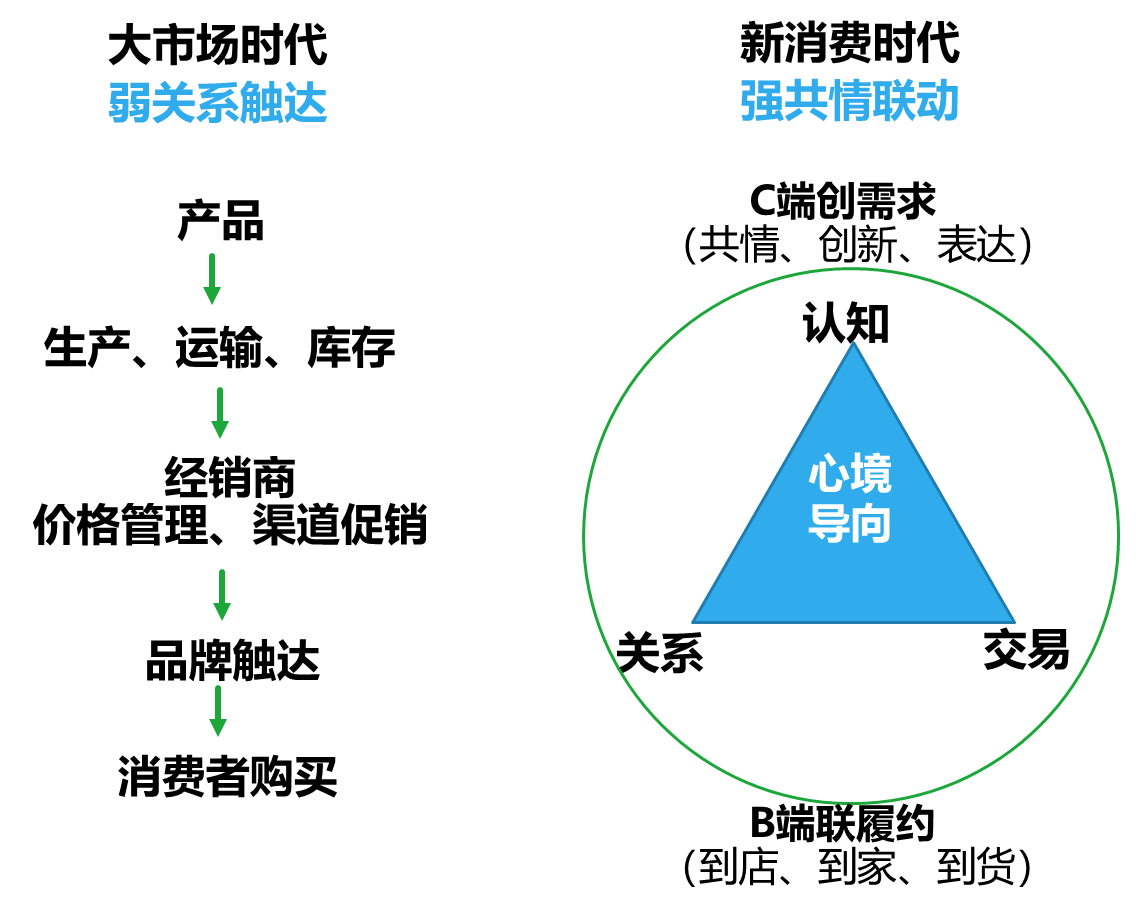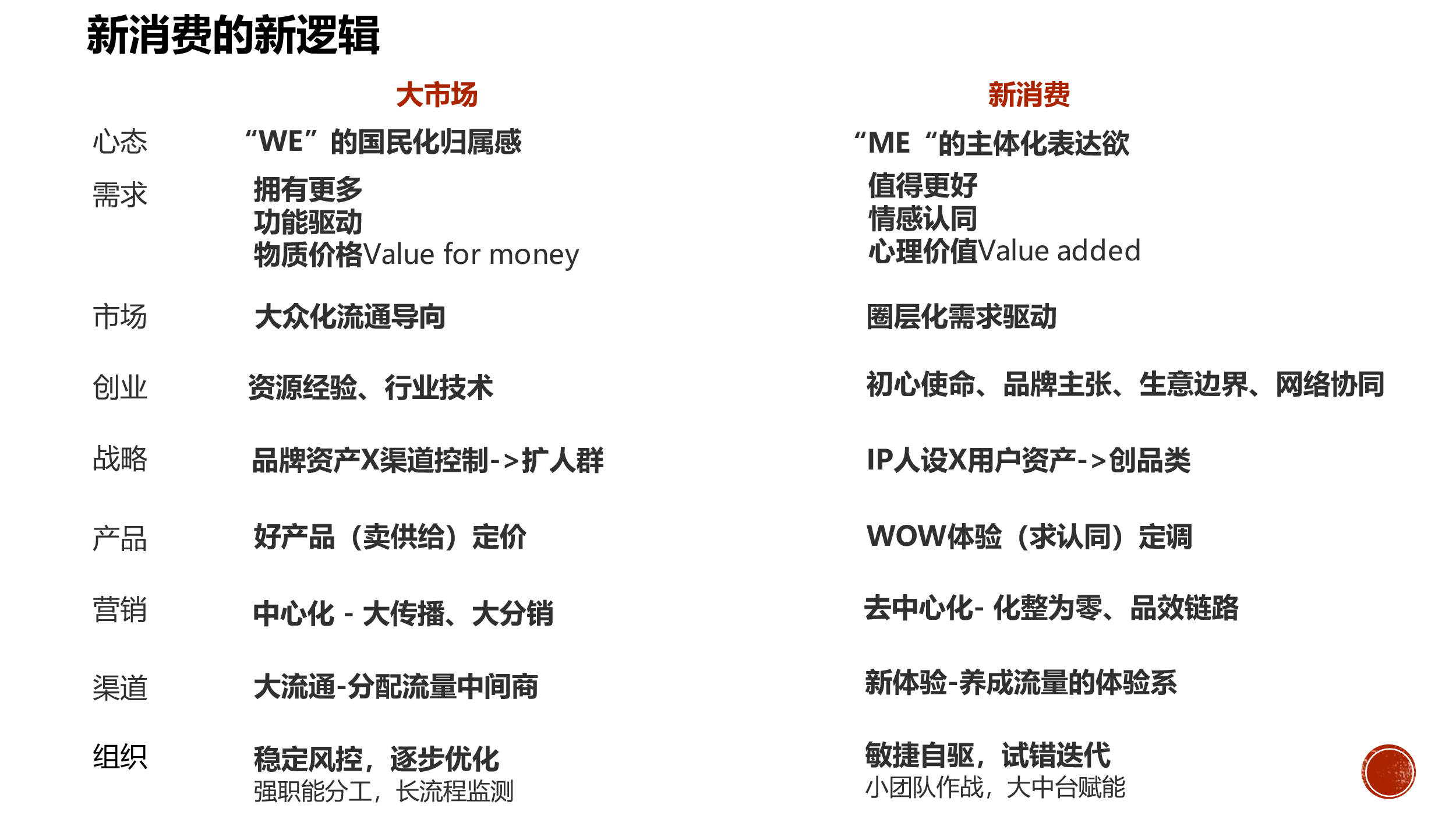“大市場(chǎng)和新消費(fèi)的商業(yè)邏輯不同,也決定了營銷模式的不同?!濒斝悱偪偨Y(jié)道。