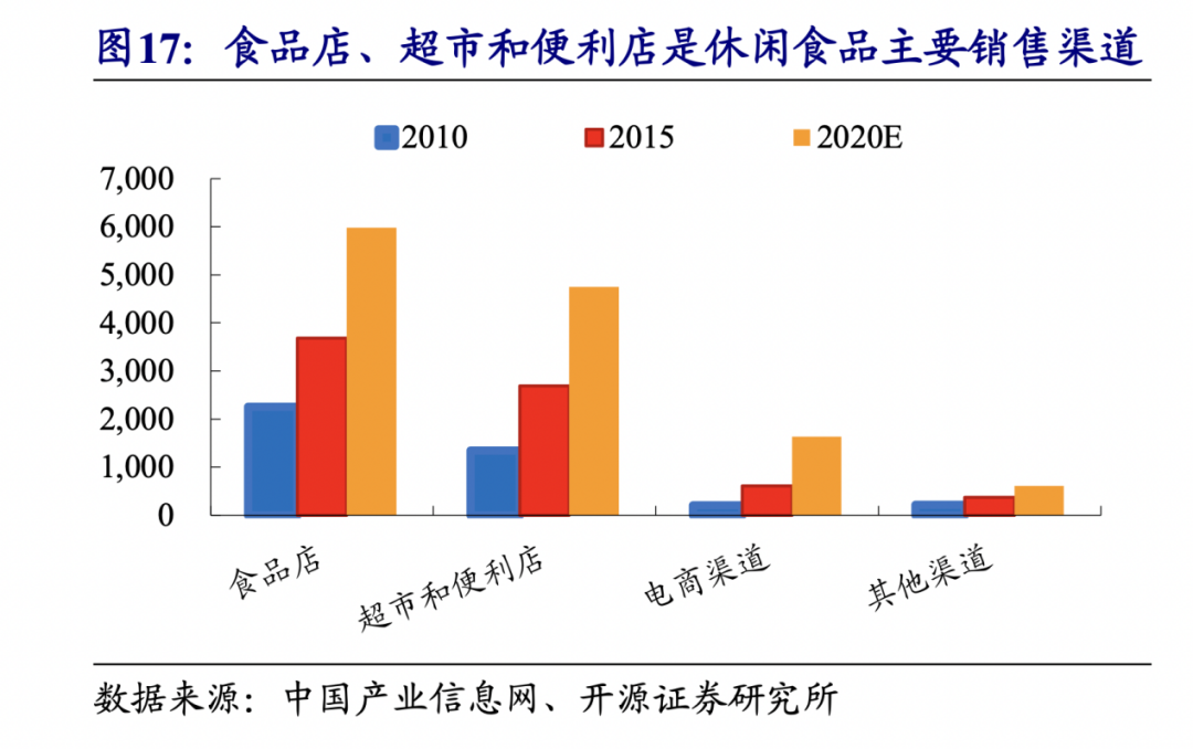根據(jù)開源證券的數(shù)據(jù)顯示,包括食品店、超市和便利店在內的線下渠道是休閑食品最主要的銷售渠道,截止2019年,休閑食品線下渠道占比達86%。即便線上風生水起,在萬億的休閑零食市場里,線下也依然是沃土。